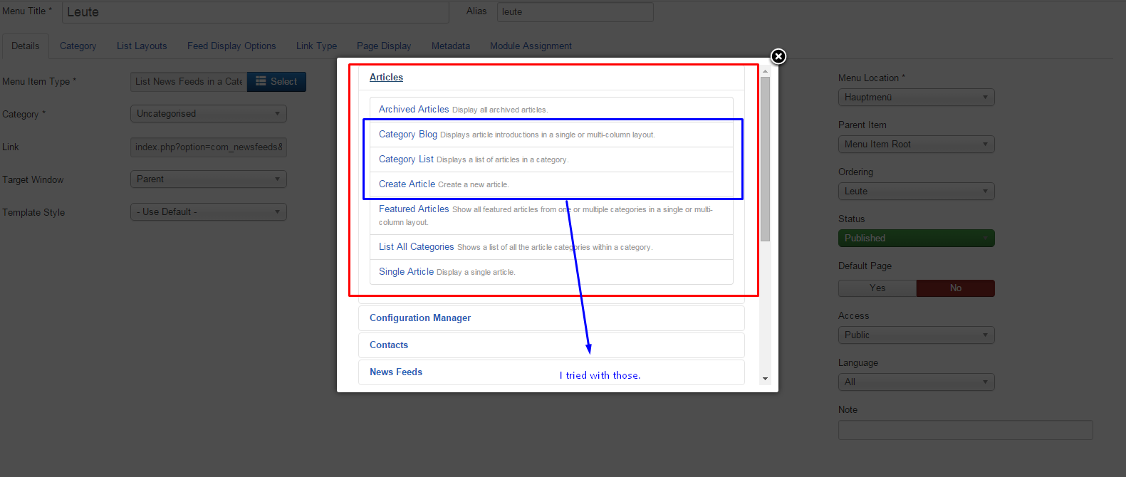 Articles / Section Blog menu item from Joomla 1.5x to 3+.