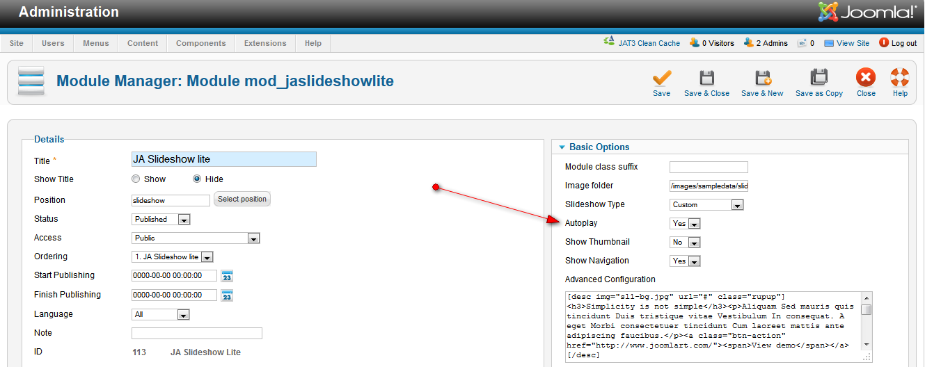 I am using the Ja SLideshow Lite on a site I am building and my client asked me if I could make it slide automatically.