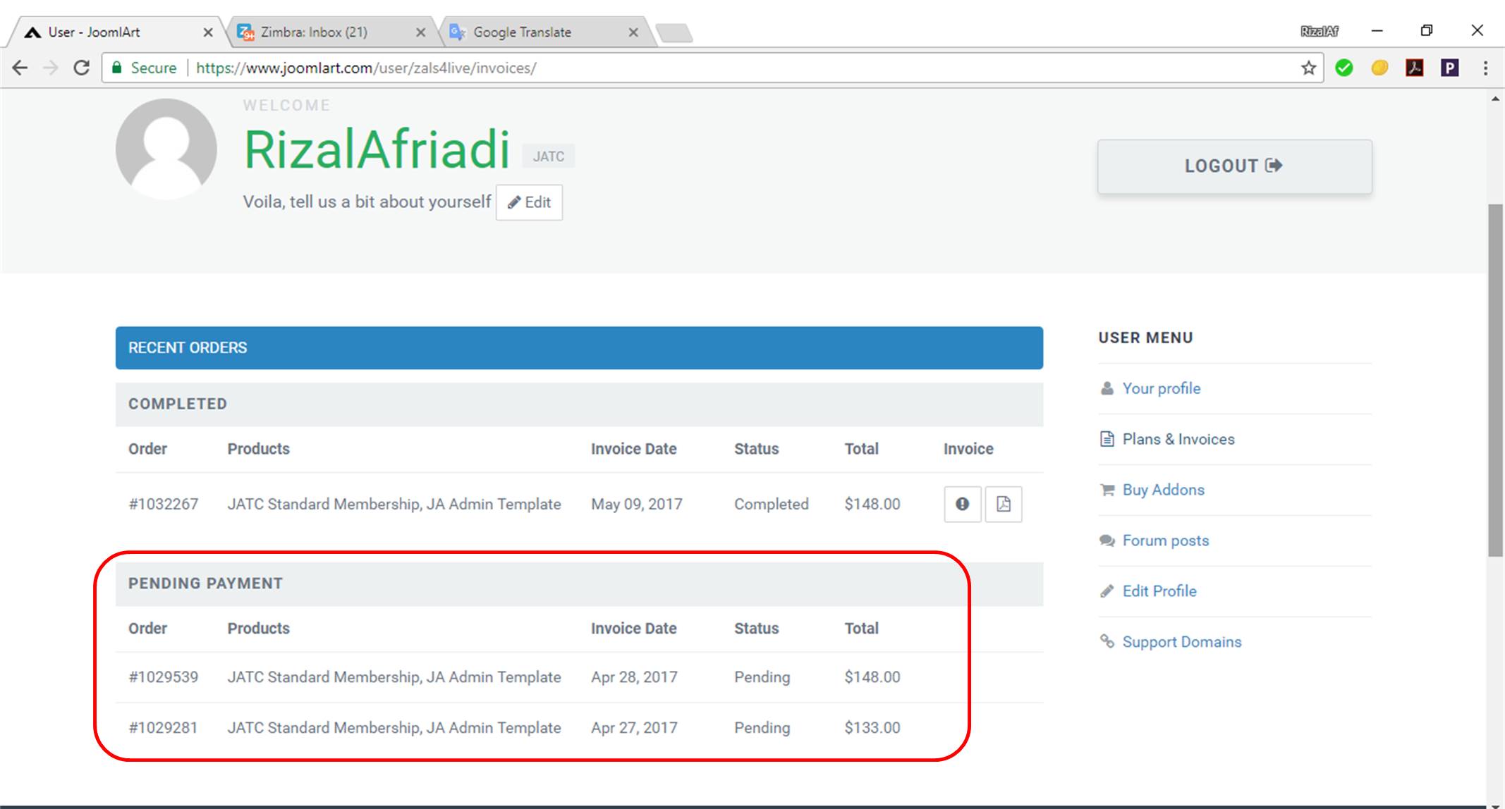 By this email I would like to inform you that I never make any membership with Joomlart. Only once I bought your product on May 2017 by: