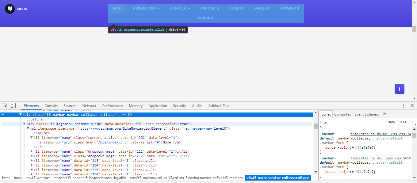 find<nav id="t3-mainnav" class="col-xs-12 col-sm-6 navbar navbar-default t3-mainnav">replace it with