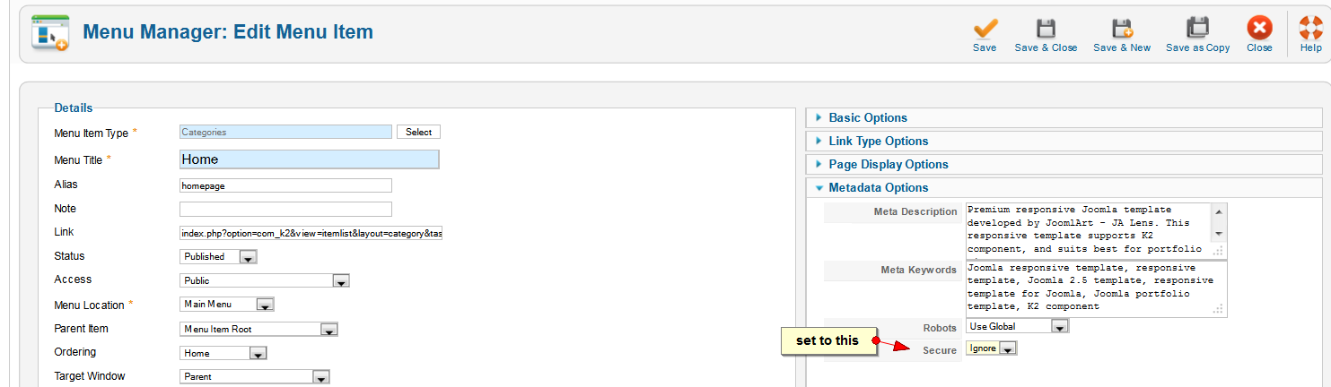 The HOME button for my JA LENS template site went from HTTP to HTTPS and now it get re-routed and cannot see my site on the home page. Where in Joomla can I change this back…So my Home button works properly…