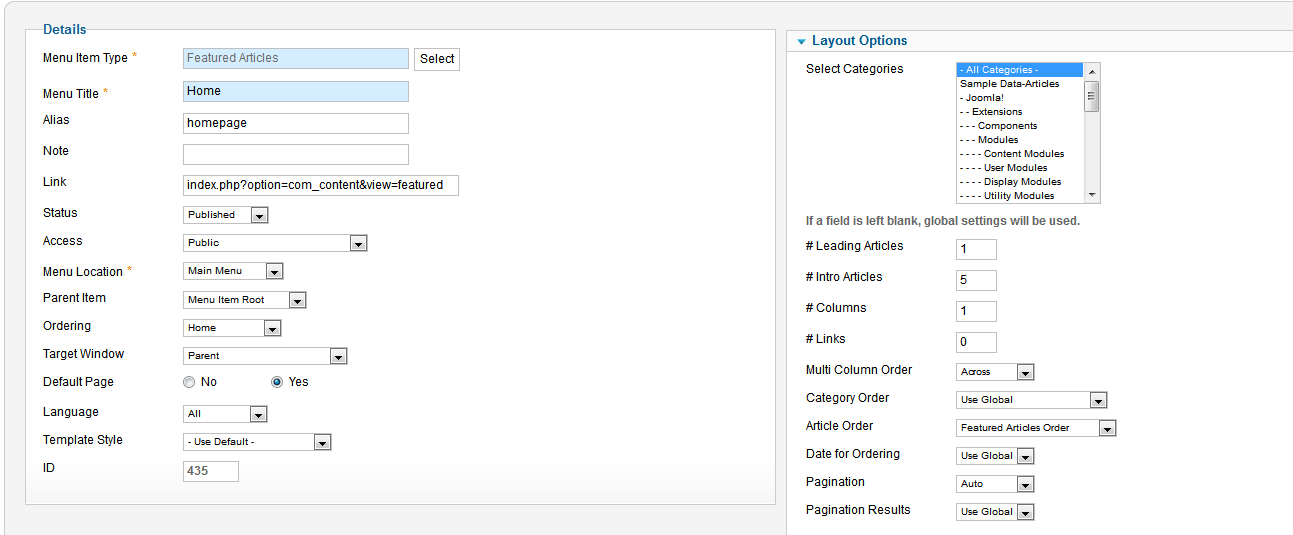 It’s Home menu item with types of Featured Articles, it shall display all featured articles from selected categories: http://easycaptures.com/fs/uploaded/575/8951431434.png