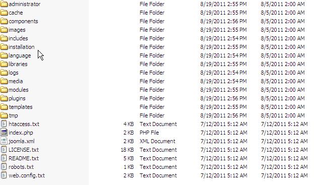 The files you extract will be very similar to this – INCLUDING a file called “installation.”