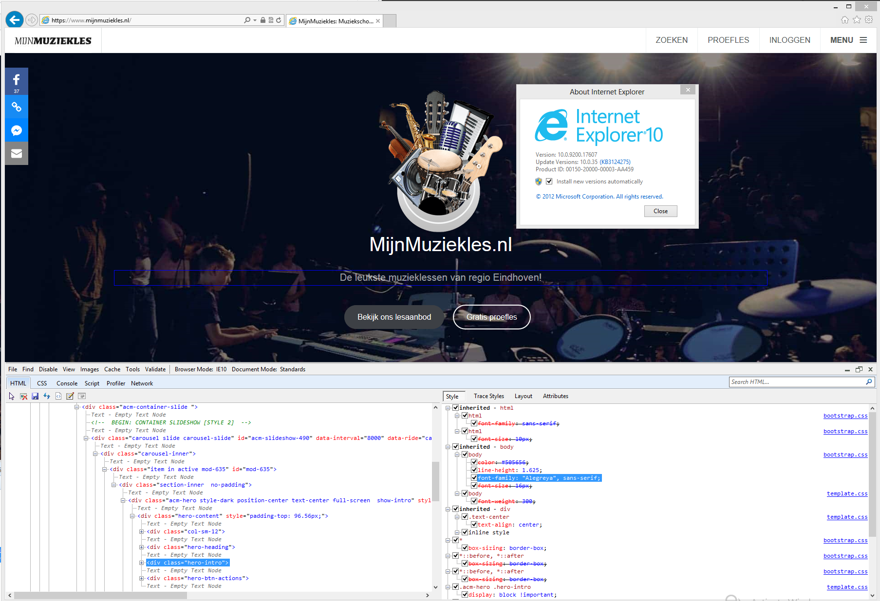 for https://www.mijnmuziekles.nl I am checking the site on windows in IE and it doesn’t give me the right font "Alegreya", sans-serif that I added. On chrome for mac it does work. I can’t seem to figure out why.