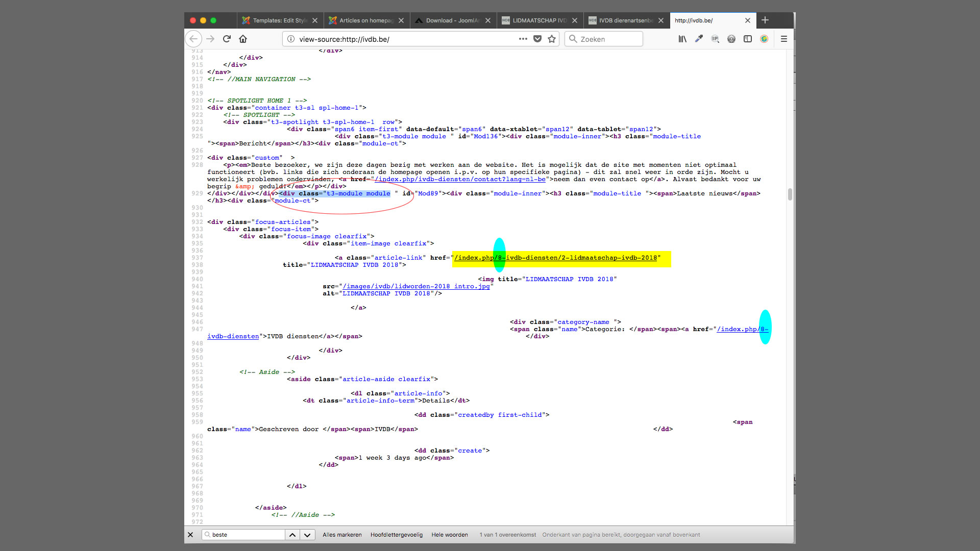 6) when checking the source code from the homepage (ivdb.be), I see that the "problem modules" are all in T3 tags (joomlart-ivdb-06.jpg)Might the problem be with the T3 Framework??…