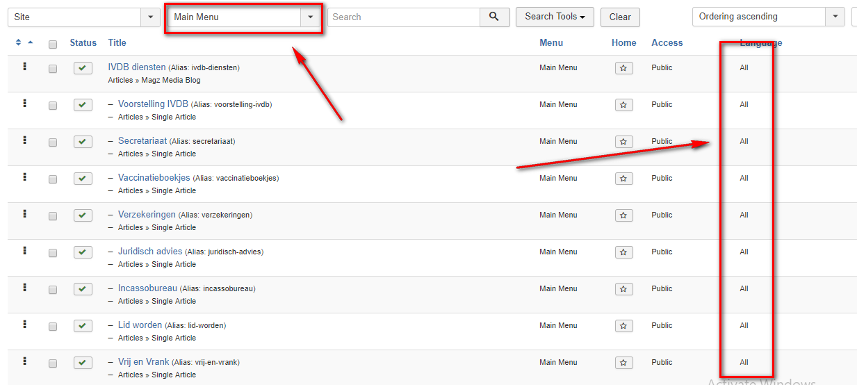 In case that you use only one language, the menu settings should be set to ‘All’ (screenshot). I tried some menu items and you can see it works properly now.