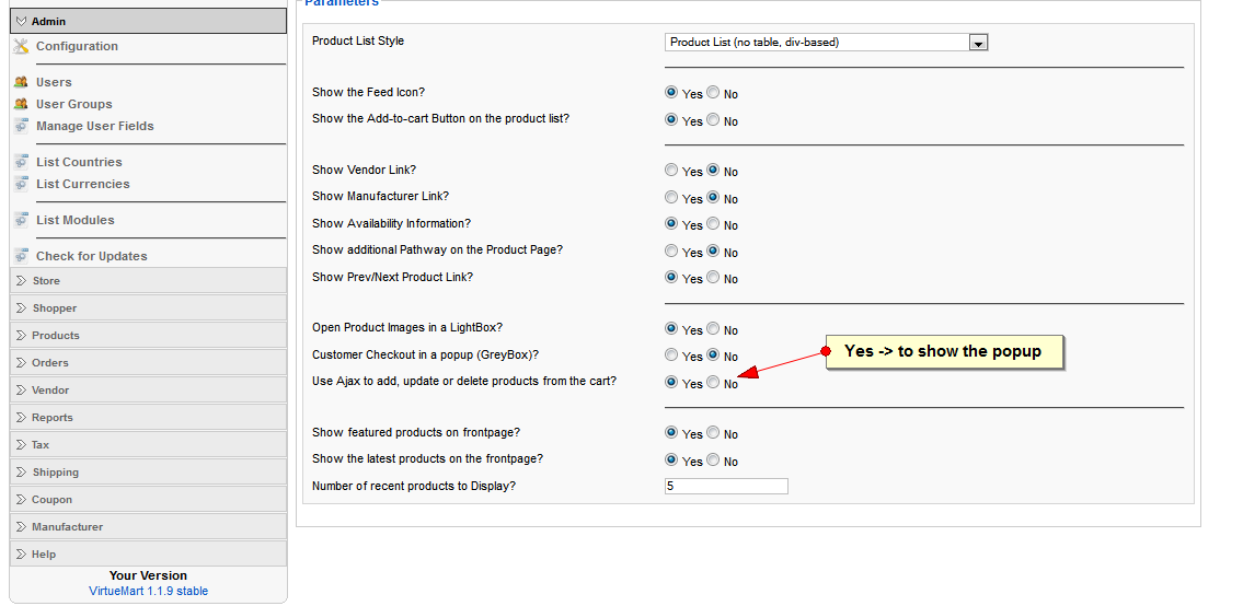 Any idea to activate the Virtuemart pop-up notice box under JA Tiris?