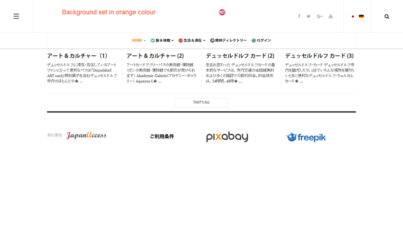 Regarding the head (background) colour, all works fine on English and German pages but not on the Japanese pages.(Screenshot-1, Jap.) http://www.euro-japan.net/index.php/jp/travel-jp