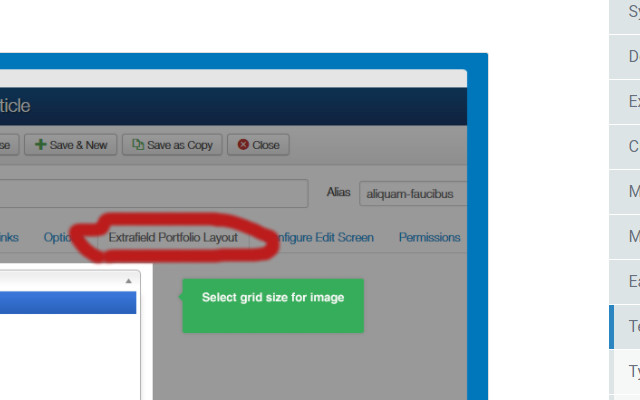 I installed quickstart templates. The moment I want to edit the size of the thumbnails in my portfolio, I miss the "Extrafield Project Layout" field.