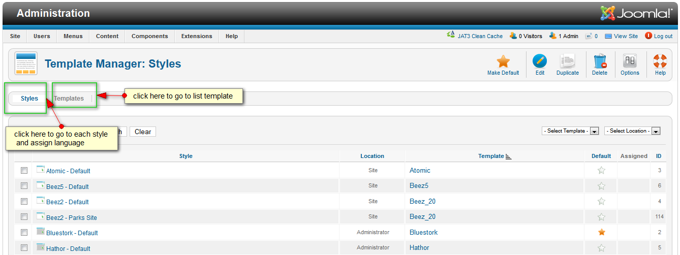 – create template for a specify language: go to back-end >> Extension >> template manager >> Templates >> Click on JA Mendozite >> Copy one template for each language.