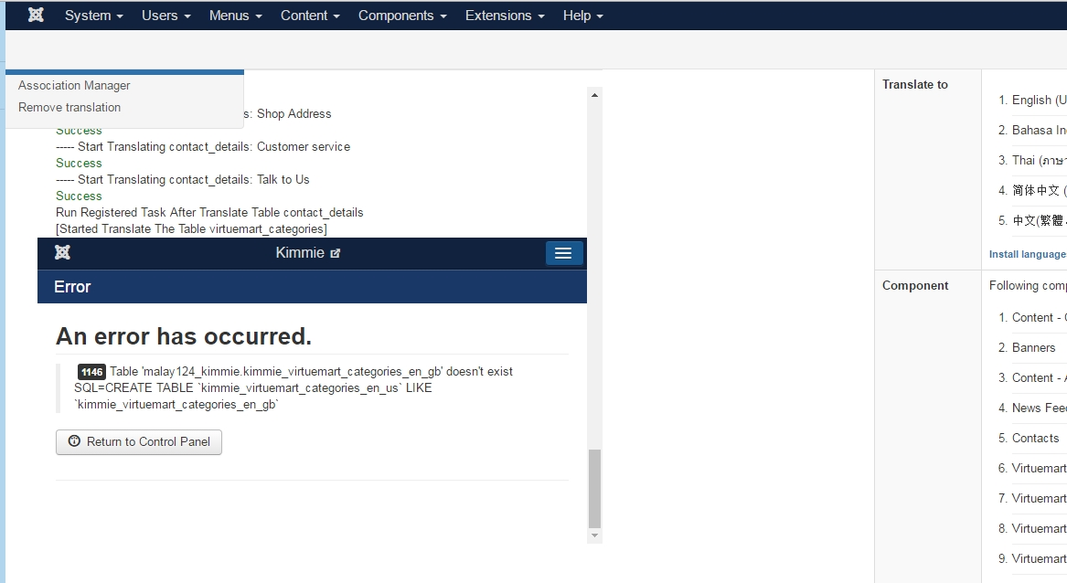 i hit an error trying to translate. i don’t have virtuemart install so it errors out. anyway to remove the virtuemart component from being translated?