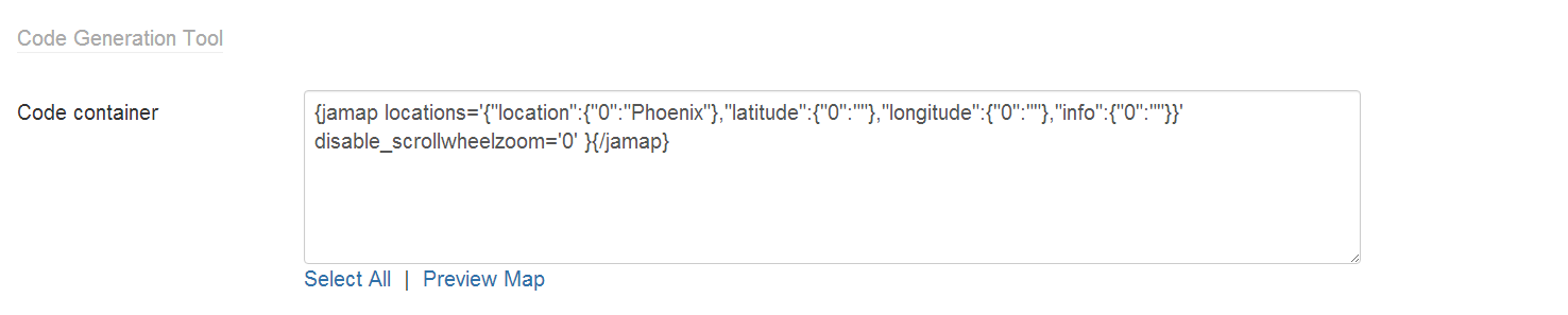 You need to click on Location checkbox in the Map plugin and then copy the code from container .