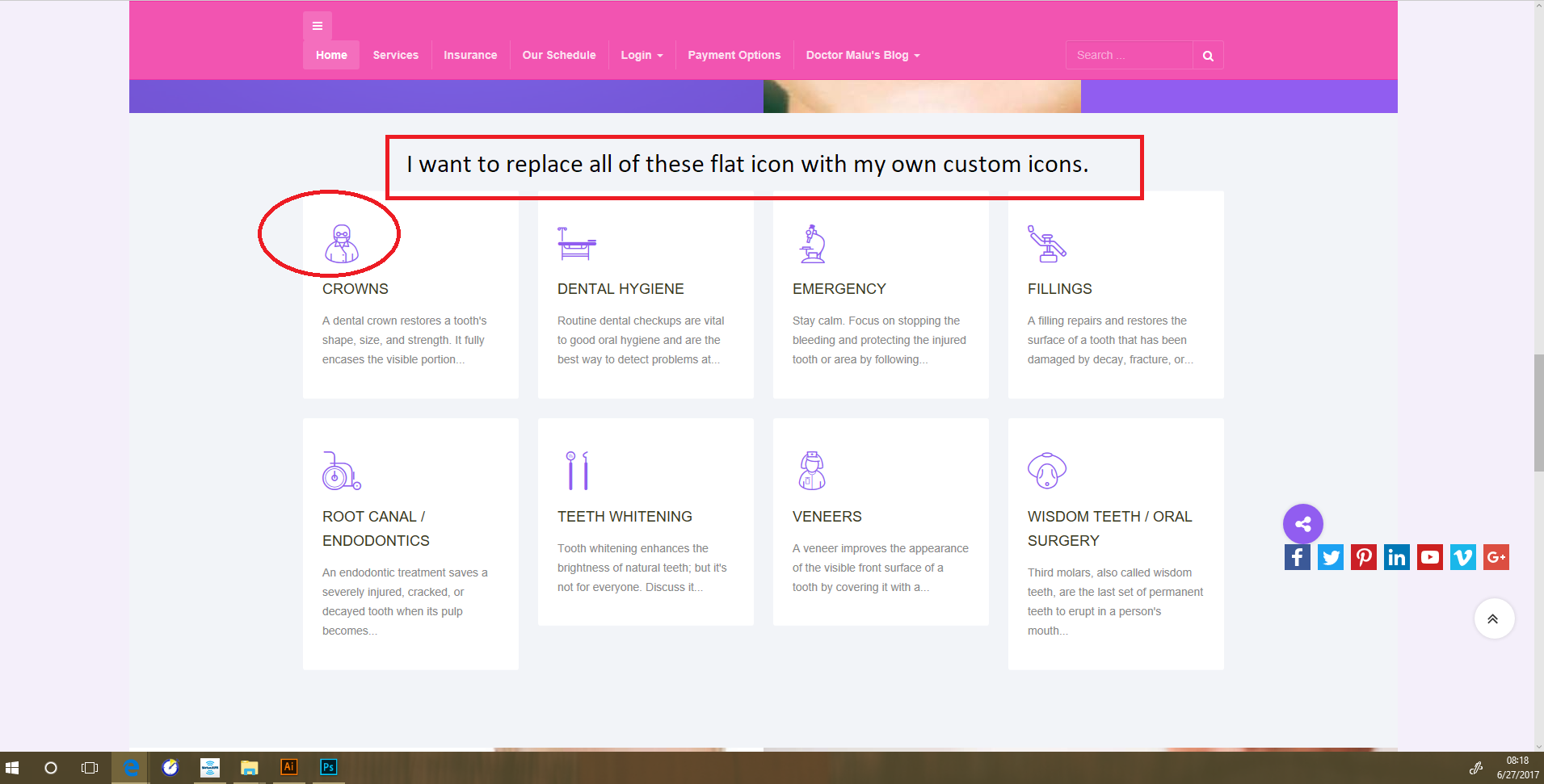 I want to replace all of the demo flat icons with my own custom png files. I have read the available forums and tried to use the information in them but it did not work. Please see Screenshot (44) for what I want to change, Screenshot (45) for my custom css file and , Screenshot (46) for the image location.Thank you,