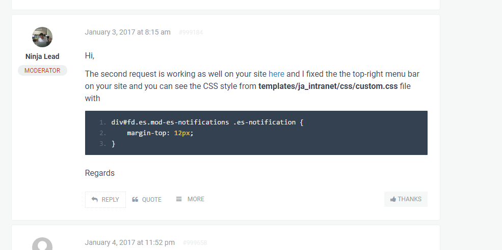 June 14, 2017 at 3:01 am #1041723The problem comes from your own override for EasySocial Dropdown menu module: ja_intranet/html/mod_easysocial_dropdown_menu/