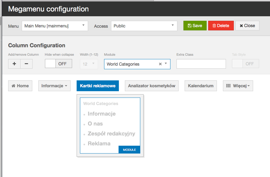 There is a problem that I can not eliminate in any way and I can not understand what its source is. To show it, I recorded a video. In short, when I try to add a module to a Megamenu item, I get a message: