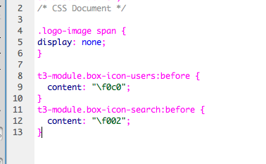 Position 3: fa-search “f002”I have updated the template.css file as per the screenshot. I have also tried matching the name to the code in the template.css (e.g. fa-users) file but nothing has helped. I have doubled checked permissions on the file to make sure the updated template.css file has been correctly uploaded.