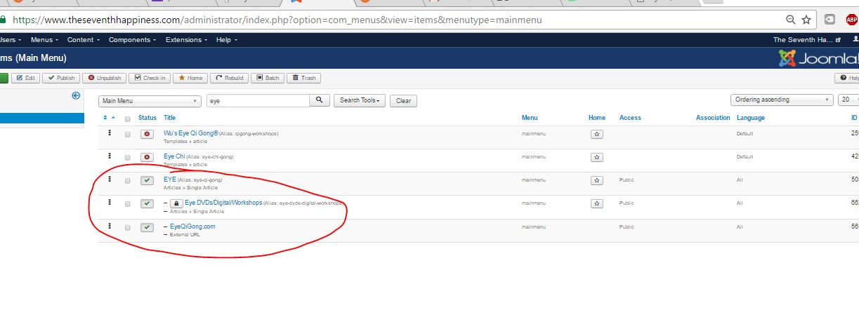 in the screenshot the Eye menu has two menu items and both are showing on site .
