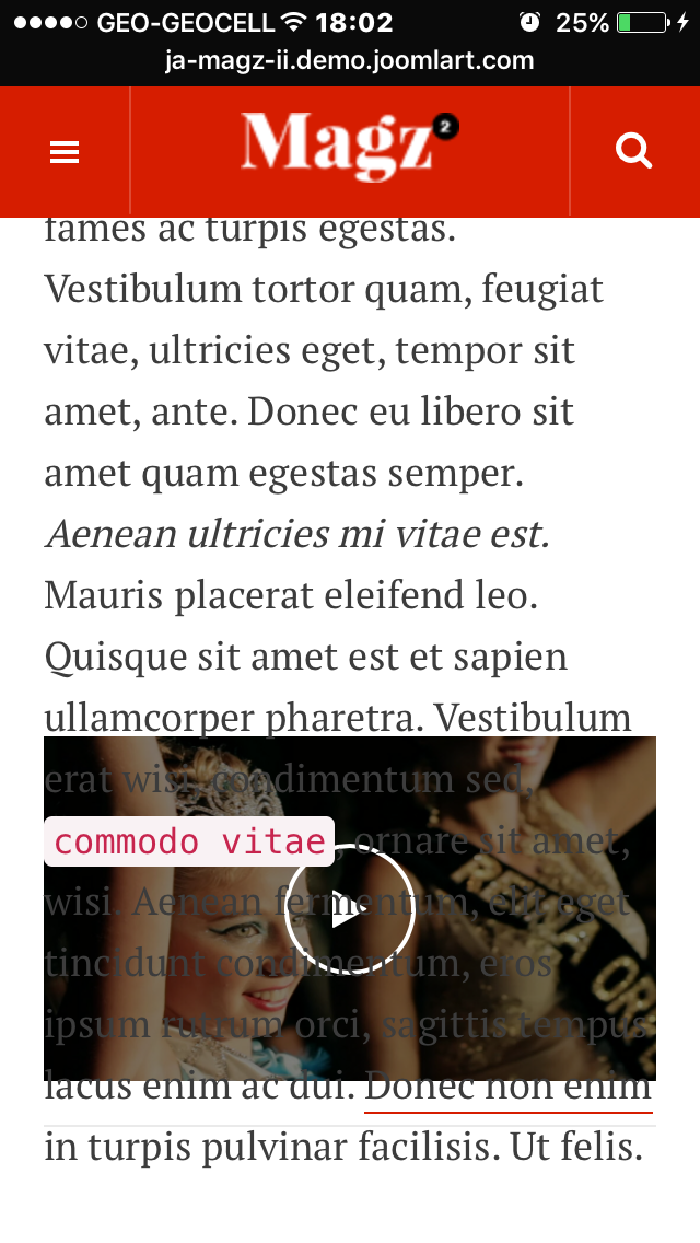 Check your demo Magz ii with iPad or mobile phone, and visit Video category. Then scroll down. You will see that Video screen is not resized.