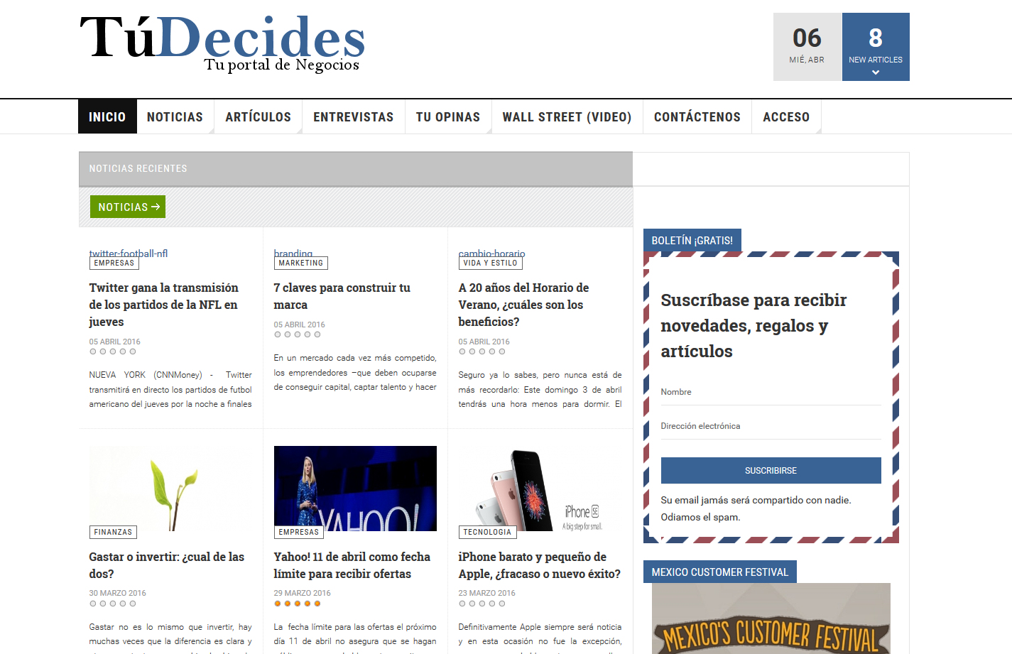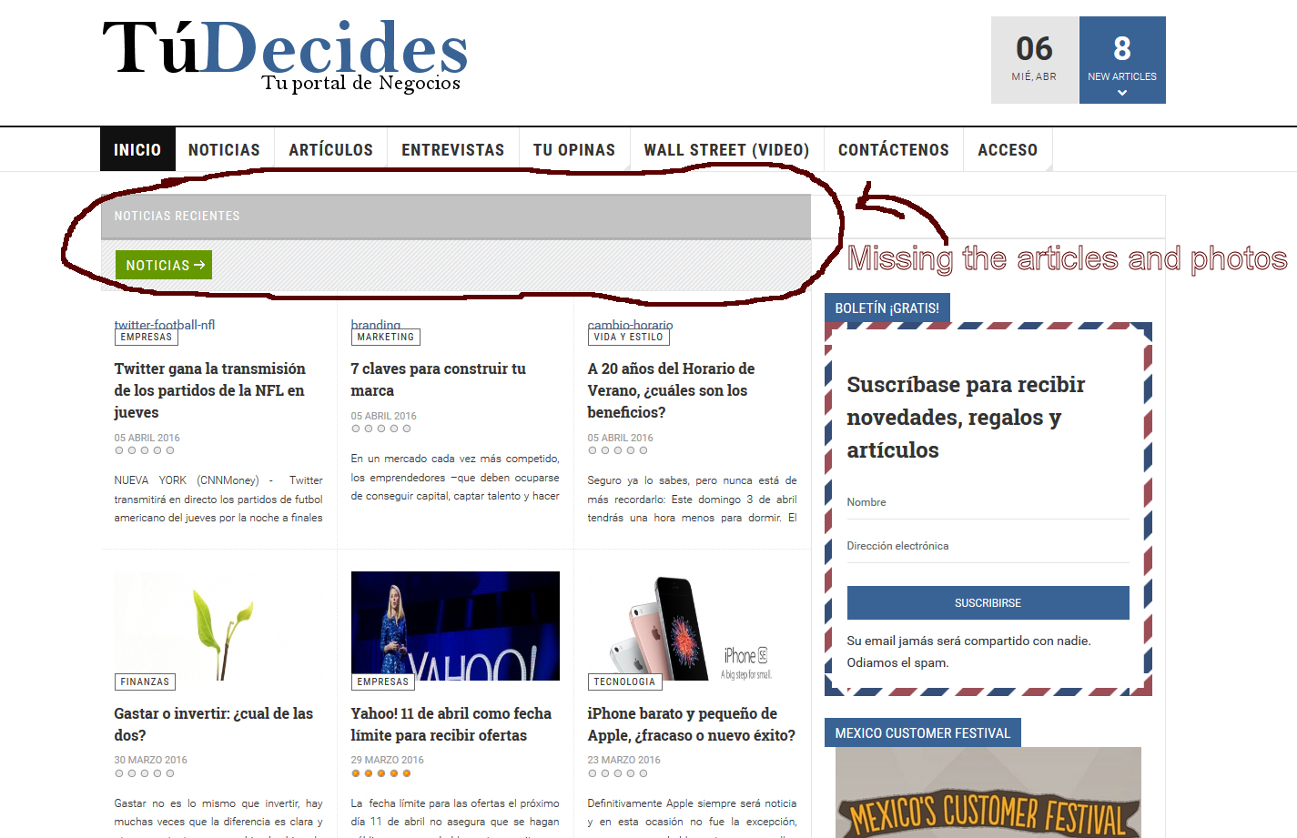 April 6, 2016 at 6:19 pm #910218Check here: https://web.archive.org/web/20160402041408/http://www.tudecides.com.mx/ The top part were said "Noticias recientes "