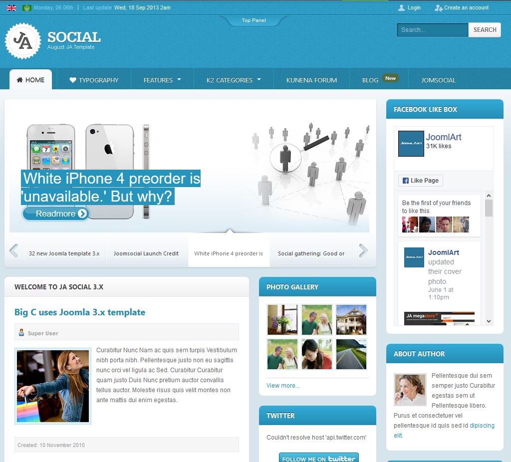 I downloaded and installed the Quickstart of JA Social. I am getting the new JA Social II. Can you avail this template as shown in the attached and your demo.