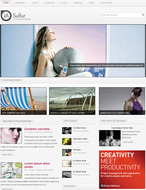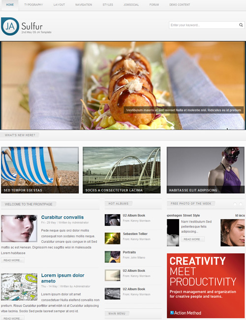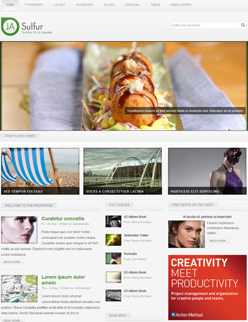 Being well-tuned with Kunena (formelly known Fireboard) and Jomsocial, JA Sulfur handles all typical aspects of an online social networking where people interactively connect, share, contribute things together in an unprecedented fashion. The Kunena suppports various forum-related features while requires no bridges to handle login with Joomla. From a different perspective, Jomsocial enables each individual to become a group onwer himself, not just to join the pond. Facebook connect, Twitter follow-up and many more... are in your hands.