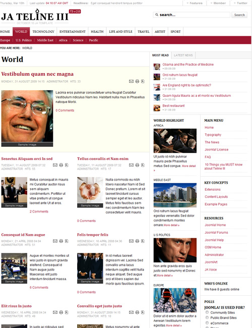 Take time and view our complete Teline Series of News Templates JA Teline IV, JA Teline III , JA Teline II and JA Teline I.