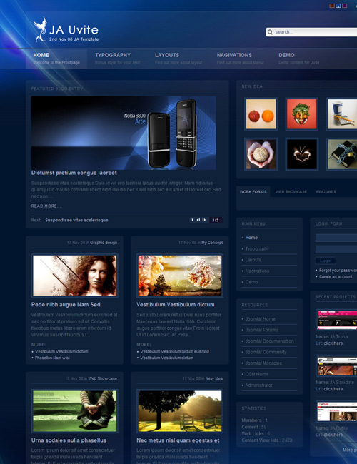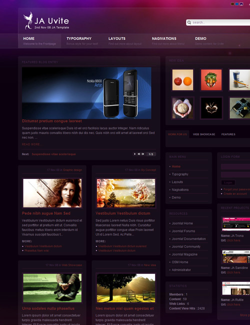 JA Uvite - the second template of November, 2008 serves as one of many special gifts that JoomlArt expect to present to JoomlArt & Joomla lovers right before the Christmas holiday seasons.